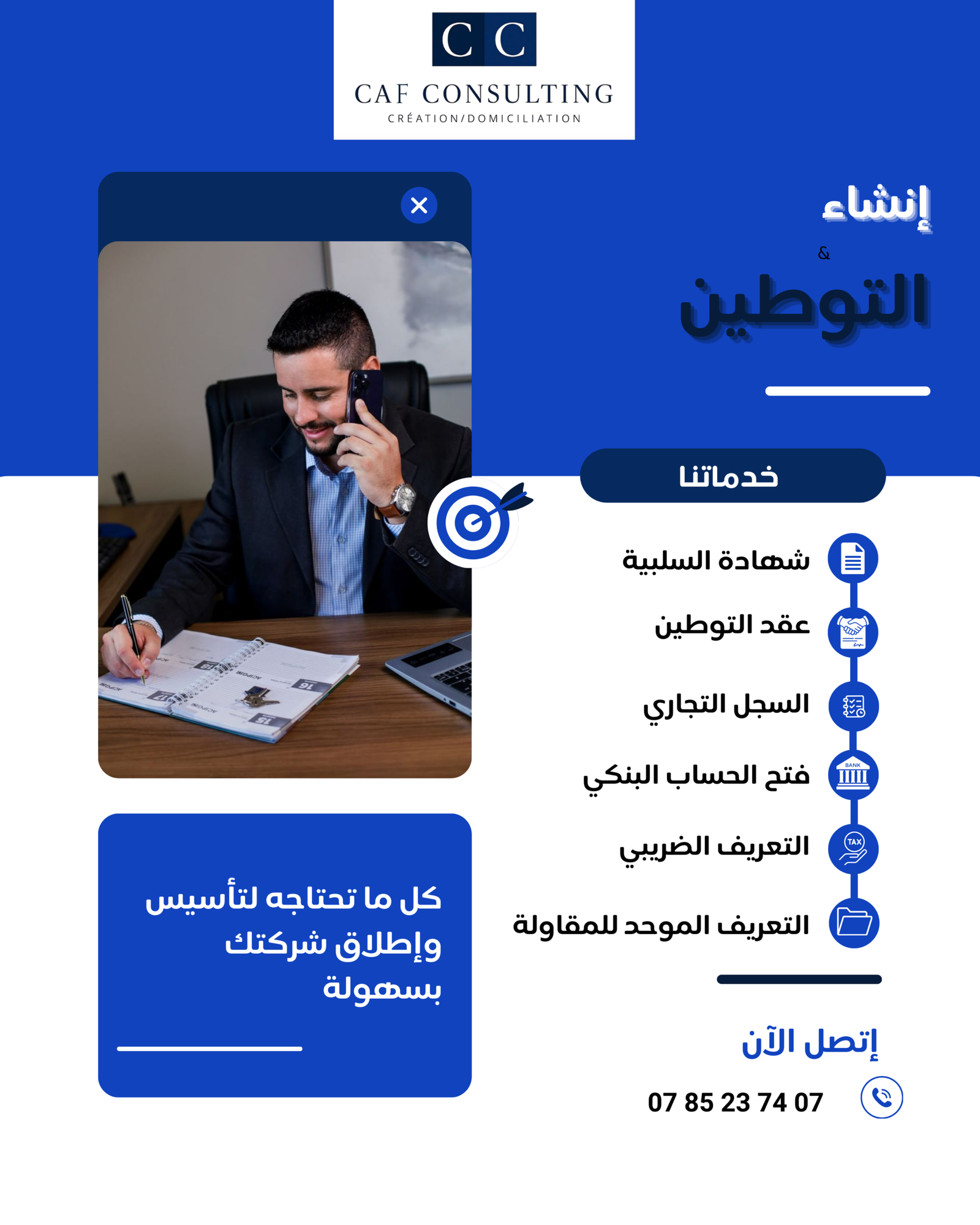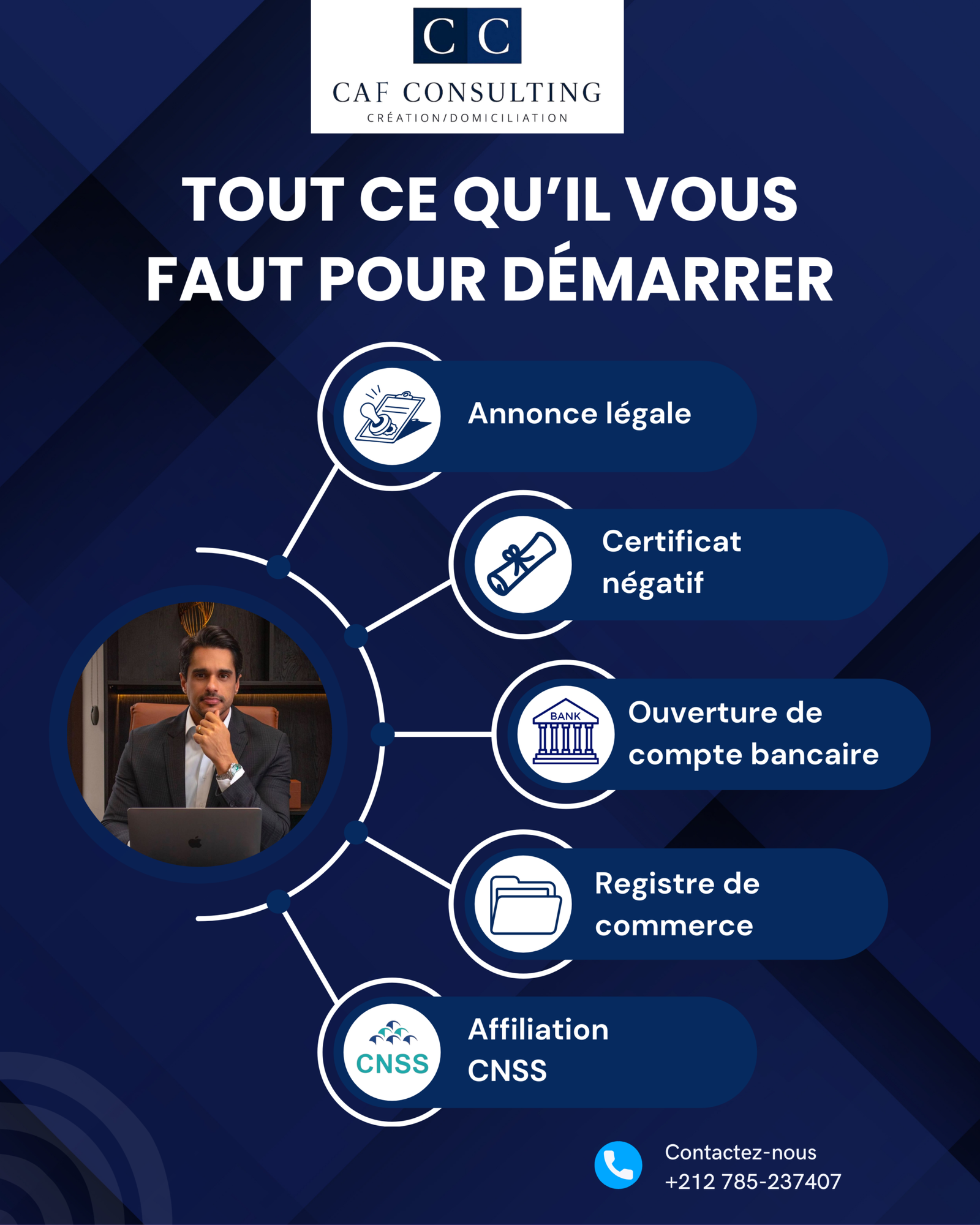 Accompagne les entrepreneurs, auto-entrepreneurs et sociétés dans la création d’entreprise et la domiciliation juridique et commerciale à Casablanca.